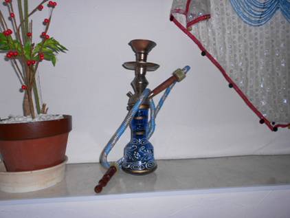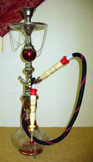 - ライと呼ばれる先端に、吸口が付いたホースを通して吸引した時、この調節装置がたばこから出る煙を取り込みます。この装置全体は、ガラス、真鍮、金、銀、木、籐など様々な素材で出来ており豪華な装飾が施されています。