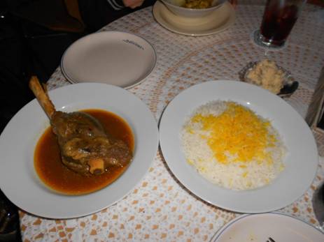| 私の好きなお料理は マヒチェ【ライス付】(骨付き羊肉の煮込み)1,700円 羊の肉がとっても柔らかく、骨は手でスルリとはずれてしまいます。 ターメリックライスがアクセントになっているご飯の上にお肉とスープを乗せていただきます。 |