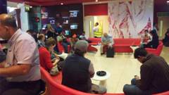 現地時間で6時になると、空港内の軽食レストランが開店し始めた。豪華な喫煙室でパイプを燻らしながら寛いでいた私も空腹感を覚え、食事券を手にレストランを覗いた。食事券1枚で飲み物とピザなどの食べ物を貰える。早速、貰って喫煙室で頂いたが、なかなかの味だった。食べ終わった後は、葉巻を取り出して一服。