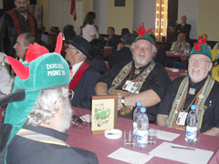 大会前日の13日の夜は7時から、前夜祭を兼ねた晩餐会。主催者の長々とした挨拶に続いて、軽音楽演奏、ロシア民族舞踊ショー、さらには参加者によるダンスパーティーが深夜まで続いて楽しめた。晩餐会では、各国の参加者との間で、親睦を深める意味でクラブバッジ交換、プレゼント交換が盛んだが、鈴木連盟会長が岡山パイプクラブチームのために、日本パイプクラブ連盟のバッジを多数用意し、各国参加者からバッジと交換要請に応えることが出来た。岡山パイプクラブ独自のクラブバッジはあるが、現在、払底して在庫がないそうなので、鈴木会長の計らいに岡山チーム一同が深く感謝。 岡山チームはバッジは無かったが、代わりに岡山の陶芸家に依頼したぐい呑みを多数持参して各国主要クラブのメンバーにプレゼントし、大いに喜ばれた。 世界中のパイプ仲間が集まるこうした大会の場で、バッジ交換やプレゼント贈呈で親睦を深めるのは、実に大切だということを改めて実感した。 ![]() ![]()