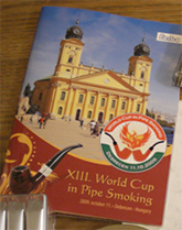 今年(2009年)10月11日(日)にハンガリー共和国の第二の都市デブレツェンで開催されたパイプスモーキング・ワールドカップ選手権大会に、日本パイプクラブ連盟(PCJ)から東京・銀座に本拠地を置く日本パイプスモーカーズクラブ(JPSC)と、岡山パイプクラブ東京支部の2チームがはるばる参戦した。 2チームともに日頃の練習不足のせいもあって成績は今ひとつ振るわなかったが、前夜祭も含めて大いにパイプ仲間同士の国際親善の実を深めたので、日本のパイプ喫煙愛好家に大会の模様を前夜祭等の行事も含めてご報告する。 2年に1回開催されているクラブ対抗戦のワールドカップに、日本から2チームが同時に参戦するのは、創立36年を数える日本パイプクラブ連盟始まって以来の快挙である。JPSCは20年ほど前に一度参戦しており、久々の参戦。岡山パイプクラブは2年前のロシアのサンクト・ペテルブルクでのワールドカップ以来の連続参戦となった。 今回はJPSCは当初4名でチーム編成していたが、中心選手の1名がご家族が急病になり、直前になって出場を取りやめた。岡山パイプクラブチームも当初4名での参加を目論んでいたが、2名が事情により出場取りやめ。2名ではチーム編成できないので、今回はチーム出場断念かと危惧されたが、新規のクラブ入会者が参加してくれることになり、何とか3名を確保して、両チームとも3名ずつの最小のチーム編成で大会に臨んだ。 ところが、JPSCの1名が鉄道事故のせいで行きの成田空港発のスイス航空便に乗り遅れてしまって、JPSCチームは出発早々、大変なピンチを迎えた。結局、1日遅れで同選手はブダペストでチームに合流できたので、事なきを得たが、前途多難を予想される遠征旅行となった。 ![]()