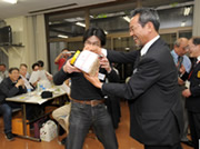 表彰式は、司会の外川氏が趣向をこらし、いつもとは違って下位者から賞品を渡した。優勝者から10位まで、11位から20位まで、21位から30位までがそれぞれ同じ色の袋を適宜選ぶという工夫をし、賞品の袋の中に別途の賞品目録が入った封筒を入れて、誰がその目録封筒を引き当てるかは、賞品袋を選ぶ人の運次第というやり方をしたが、参加者の間では好評だったようだ。