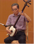 郷土芸能披露はおなじみの津軽三味線独演会。平木会長の友人が見事な腕前で次々に演奏して盛大な拍手を浴びた。