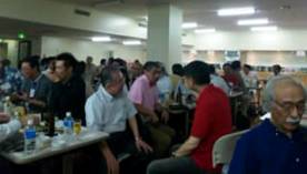 消えた選手がたむろする場外の休憩室では、今回新たにスポンサーになって下さった酒屋さんが「パイプと洋酒の相性チェック」と称して様々な洋酒の試飲会があり、賑わった。JTアイメックス社もたくさんの同社製品を展示、気前よくサンプルを提供して下さり、人だかりが絶えなかった。 100分を超えたところで、残ったのは久保氏のみ。会場中央で無念無想という雰囲気でもくもくと煙を出していたが、107分余りで「消えた」の合図。パイプチェックも合格してチャンピオンが確定した。ただし、久保氏は過去に地区大会のチャンピオンパイプを既に獲得済みのため、同じ六本木RPC会員で準優勝となった太田隆樹氏(記録99分45秒)がチャンピオンパイプを獲得した。 競技終了後は、和気藹々の懇親会と悲喜こもごもの表彰式。今回は、映画「終戦のエンペラー」製作会社が、映画で使用したコーンパイプ1本を景品に提供して下さり、欲しい人が全員で盛大にジャンケンしたら、主催クラブ員が獲得し、盛会のうちにお開きとなった。 主催の池田山下FVPSCの皆様、まことにお疲れ様でした。大会に協賛して下さったスポンサー企業の皆様、ありがとうございました。心から御礼申し上げます。また今次関東大会に参加して下さったパイプ愛好家の皆様、10月6日に浅草で開催する全日本パイプスモーキング選手権大会でまたお会いしましょう。 |