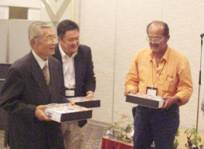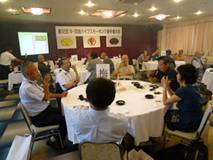 表彰式と懇親会は会場を替えて1階のパーティー会場で。蒲池社長の乾杯の音頭で、香川の山海の珍味と美酒が振舞われた。今回は、高松PSCの格別の趣向で主な賞品が高松名産の盆栽。壇上にずらりと並んだ。県外から出場した選手が成績上位順に、好きな盆栽を獲得するというもので、豪華な盆栽を獲得した選手は大喜びだった。チャンピオンパイプは、樋上選手が過去に獲得しているため、準優勝の伊勢野選手が獲得した。宴酣のうちにそろそろお開きの時刻。主催の高松PSCの会員各位の心尽くしで、印象に残る楽しい大会だった。