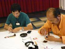 続いて大会を後援して下さったJT四国支店の村雲勤業務部長が祝辞を述べ、梶浦恭生日本パイプクラブ連盟(PCJ)会長が、連盟を代表して「前身の中国大会、四国大会まで含めると30数回に及ぶ長い歴史のある中四国大会の成功を祈念する」と挨拶した。大会使用煙草の「桃山」を提供して下さったJTアイメックスの蒲池光社長が、今年で誕生80年を迎えた「桃山」について企業機密も交えながらの製品紹介をした。大会役員による競技ルールの確認の後、5分間の煙草詰め。鐘の音を合図に競技が始まった。