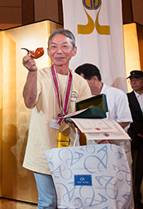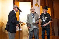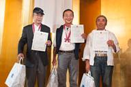 しばらくの歓談後表彰式に移る。まず団体、個人、レディースの表彰を行ない、フリー、海外選手の表彰の後、皆煙賞、精煙賞の表彰を行ない、梶浦恭生会長から賞状、記念品がそれぞれ手渡された。精煙賞の99才の関口一郎さん(JPSC)には万雷の拍手だ。