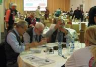 壇上には新旧のCIPC会長、開催国のポーランドの会長、そして大会審判長として鈴木CIPC副会長が座った。 日本と同様、スピーチ、タバコの説明等が複数言語で行われるため、時間がかかる。 他の国の参加者の様子を見ていると、興味深かったのは、配られたA4判用紙の四辺を折り、巨大な灰皿状にする事だ。マッチはかなり不良品があり、交換を申し立てるスモーカーも多かった。パイプはポーランドのパイプメーカー、Mr.Brogのパイプが使用された。パイプ・シェィプはロバット、シャンクの端にポーランドの国旗と同じ白と赤のリングが付き、シャンクの木部には「WORLD CUP Poznan 2013」の文字が金で刻まれている。綺麗なパイプである。タバコの配布が始まると全員が一斉にタバコを揉み始めた。