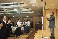 競技が無事終了後、パーティーとアトラクション、表彰式となり、北海道紫煙会札幌副会長藪氏の乾杯の発声の後食事を楽しみながらヨサコイソーラン祭りの北翔大友和(トワ)チームによる演武で盛り上がったところで、表彰式に。