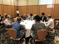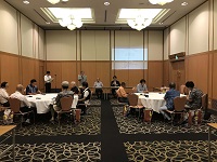 大会が早く終わりましたので、パーティーを待たず、即、表彰式へ。団体1位から3位、個人1位以外は、自分が欲しい賞品を持って帰る方式で行なった。続いてパーティー会場に移動し、タバコを燻らせてながら岡山の食材を主に並べたコース料理を堪能しつつ、会話が弾み。来年の高松での再会を約束し、無事大会を終えた。