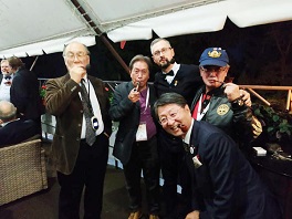 やや残念だったのは、会場の宴会場が禁煙だったこと。たばこが飯より好きな愛煙家の集まりですから、次々に会場外の広いテラスに出て、立ってパイプを吸いながらの賑やかな国際交流です。