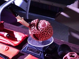 賞品授与は上位から自分が欲しい物を選んで貰える方式でした。パイプはファルコンしか残っていなかったので、逡巡していたら、係の人が「こちらからも選べますよ」と案内されたのが、ピューター(錫合金)のARTINA社のコーナーでした。トロフィーの様な大きな花瓶や2リットルは入るビアジョキもありました。どちらもガラスとピューターのコンビの良い物でした。