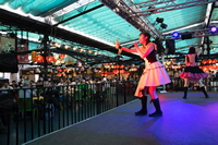 競技の後は、成績発表、ビアジョッキを掲げての乾杯、食事はバイキング形式のパーティと移り、余興にはビアガーデンのアイドル「マイちゃん・アミちゃん」のライブ、昭和感のある選曲で会場を大いに盛り上げてくれました。そして最後はトランペットの演奏でお見送り…。