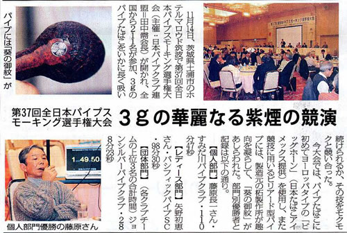 第37回全日本パイプスモーキング選手権大会(平成22年11月14日、茨城県土浦市で開催)の模様が業界紙「たばこ塩産業」に掲載されましたので、ご紹介します。