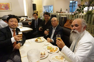 今年も総会・理事会終了後懇親会を開き、全国各地から集まったメンバーのエールの交歓が行われた。乾杯の音頭をとった梶浦会長か、来年の世界大会団体戦メンバーは今年の大会の上位入賞者と最近数年の大会の成績優秀者から5人を選抜して日本チームを編成すると、今年の大会の出場者が多数あることを願って挨拶した。歓談が続きパイプ仲間の絆を深めた。最後にジョンシルバーパイプクラブの佐久間会長が、江戸時代から伝わる〆のやり方を説明し、3本締めで閉会した。