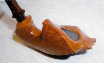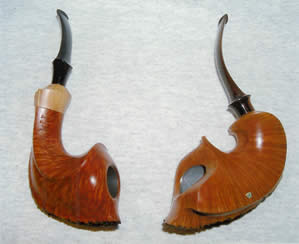 上のセンターに掲げてあるホーン・パイプを一見して、そのマユの様な突起と山羊ヒゲで私はかなり困惑させられたものである。徳富は一体何を考えているのか、眠れる獅子それとも山?そこで、私はTeddy Knudsenの有名な上向きのホーンでプラトーの峯が底部に配されたデザインが頭に浮かんだ。