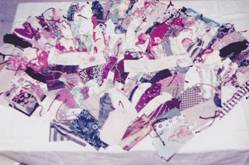 実は、私は当時、帯屋さんの二階に住んでおりましたので、着物の端布はいくらでも譲って頂けましたの。