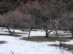 早速、ホテルに投宿して、皆で水戸の偕楽園を訪ねてゆっくりと観梅。今年の梅祭りは2月20日からだそうで、12日はまだ一分咲き程度でしたが、それでも紅梅と一部の白梅の木の中にはかなり咲き誇っているのもあり、早春の風情を大いに楽しめました。前日の雪が庭園に結構残っていて、誰が作ったのでしょうか、ベンチの上には雪だるまさんが鎮座していました。