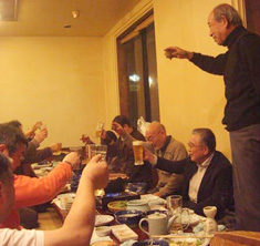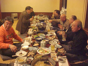 庭園内を歩き回って少し疲れたので、ホテルに戻ってしばし休憩。夕方5時半から市内の料亭で開催の鮟鱇鍋例会に繰り出しました。水戸JCブライヤーズクラブの皆さんが約10名ほど、連盟からはJPSCと六本木ローデシアンパイプクラブの面々が計6名。皆、顔見知りの間柄とあって和気藹々の雰囲気で例会が始まりました。