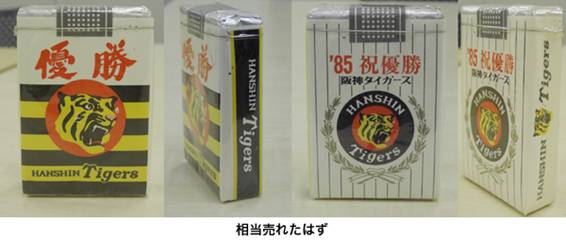 「これは皆さんにお配りして」とワン・カートンのタバコを秘書に渡すと、秘書氏は各記者にひとつひとつ配ってくれた。末席の私にも回ってきたのが「’85 祝優勝 阪神タイガース」と印刷された記念タバコ、マイルドセブン(写真)である。「限定」と記されている。