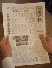 数日後、思いもかけず「播磨時報」最新号が送られてきた。「記者席」欄を見ると、当夜の知事の講演内容が載っていた。