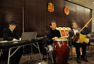そんな40年近い、細く長い縁が繋がり11月26日、菅野さんはわがJPSC例会に突如現われて、そのタッチを小川さんのコンガ、佐々木さんのボンゴとともに、仲間の前で披露してくれた。これを奇跡と呼ばずしてなんと呼ぼう。JPSCにいると奇跡ばかり起きる。お三方とも愛煙家で、紫煙をくゆらながら、総会の雰囲気にもよく溶け込んでいる。