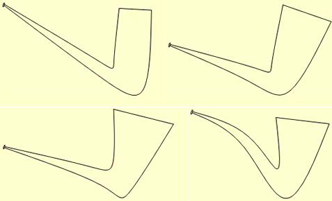 パイプのシェイプをスプライン曲線で再現したらどうなるだろう、というのは当然の帰結である。この時コントロールポイントは多いほど多様な形状が得られるが、少ないほど曲線が美しい、牽いては性能も優れていると考えられる。パイプにおいてはチップとボウル両端は必然として、アッパーラインとロワーライン中間に各2点が基本であろう。たった7つの点でどれほどのデザインが可能かと試みた。