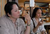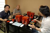 JPSCのスモーキングコンペは月例会は2グラムで技を競うが、旅行会は3グラムが恒例。煙道が詰まって着火失敗の会員も1名いたが、火保ちが良いたばこだけに40分ほどは消えることなく、モクモクと煙を出し続ける。そのうちに男性会員がふがいなくも次々に消えてゆき、80分を超えたあたりで、このところの例会で連続優勝の小泉氏対相田,赤堀、小野田の婦人会員3名の戦いとなる意外な展開となった。