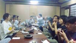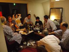 早めに宿について風呂を浴びる人もいれば、ゆっくり市内見物の人もいて、夕食開始までに、遅れて参加のクラブ員も顔をそろえた。宿はJPSCが貸切で、食堂で夕食の後は遠慮なくパイプを燻らしながら談笑。