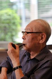 本郷の郁文館です。その頃からたばこを喫い始めた。職人の家だし、皆、職人が煙管(きせる)でたばこを喫っていた。その時分の(煙管用の)刻みたばこは、はぎ、あやめ、水府あたりで、はぎが一番安く、水府が上等だった。たばこに関心があったからそんな名前を覚えています。だから、(家でも)堂々と喫っていました。ただ、日本の刻みたばこはヤニ臭かったね。