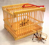 〇駿河竹千筋細工の虫かご。細かな竹細工にご満悦のアンネさん。「でも何を入れるの?」「Insect(昆虫)」と答えると、怪訝な顔になった。欧州人には昆虫採集・飼育の習慣が無いことがあります。そこで次に、竹で出来た鈴虫を。ホ/ヒ、ホ/ヒ、ホ/ヒ……。