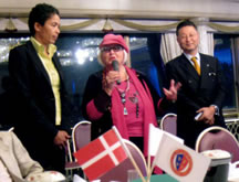 会館入口で望月会長夫妻と杉山s、西村s、西村fsで出迎え。ゴ・オフトゥン(今晩は)とデンマーク語で。柘氏「何で知ってるの?」と。挨拶くらいは知っておこうとCD付き会話本で勉強するつもりが、デンマーク語は難しく、モノになったのはゴ・オフトゥンとマング・タック(有難う)だけ。大体、本のカタカナ表記とCDの発音が一致しないのです。そう言えばアンネ・ユリエか、アンネ・ユリアかといった具合。エ/アとでも表しておくか。
