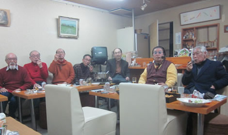 例会では惣司(そうずか)事務局長が各々スモーカーに3グラムの葉を配り『ロングスモーキング』と称して、クラブ内で競技をしており、2月例会では、前会長の後藤さんが63分でトップでした。会に先立ち松村会長から『2月20日は国際パイプスモーキング・デーで、パイプデーを祝して心して楽しみましょう』と挨拶があり、全員でスモーキングを楽しみました。