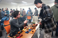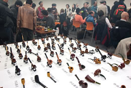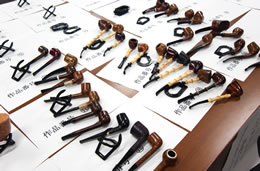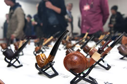 午前10時の開場前には待ちかねたパイプ愛好家らが会場前でオープンを待っており、開場されるとどっとの入場です。パイプコンペティションの一般投票券を受け取り、早速お目当ての作家ブースを覗いたり、展示物を見たりしています。顔見知り同志が挨拶を交わし、会場いっぱいに瞬く間に紫煙の煙があふれました。当日は約250名の参加者が集まり、パイプを通じて友好を深めました。会場では国内の有名パイプ作家らが最新の作品を並べ、パイプメーカー・喫煙関連団体などのブースでは、パイプ煙草や喫煙具などの展示・販売を行っていました。