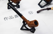 来場者が注目するのは、ハンドメイドパイプパイプ・コンペティションの出品パイプ。今年は67本のパイプが出品されました。これは過去最大です。今回の出品パイプもデザイン性に優れ、かなり完成度が高いものでした。毎年コンペを積み重ねてゆくうちに出品者の技量が着実に前進しているとの感を深めました。今年のショーでは、パイプコンペ入賞者で新人パイプ作家となった故桑進一原氏(昨年暮れ、不慮の事故で死去)を偲ぶ展示もあり、関東パイプオフ会が発起人となり「桑原進一賞」というクラシックシェイプに与えられる賞も加わりました。