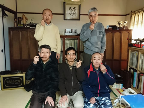 当日、渡辺会長宅に5名が集まり、いつものように各自の趣味を披露し、共通の話題で盛り上がった楽しい時間を過ごしました。最近新しいデジカメ(5000万画素一眼レフ)を買った会員は、A2サイズにプリントした写真と、自身が撮影した4×5判の写真を比較したり、野鳥の撮影を趣味とする会員の持って来た写真を囲んで、その苦労話を聞いたり、国鉄時代に集めた大量の記念切符や入場券を見せびらかしたり、話題は尽きませんでした。スモコンをやりながら趣味の話をするものですから、いつも記録は二の次となってしまいます。会長所有のヴィンテージオーディオで音楽を流しても、メンバーの話し声が大きいため、BGMにもならないというのはいつものことです。