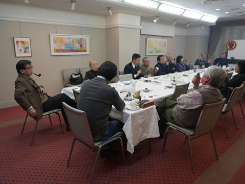 この日は非常に寒く、メンバーの参加が少ないのではと思いましたが、 予想外に皆揃い、盛況の例会でした。