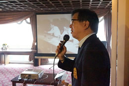 続いて、J.P.S.C.の歴史を映像で流し、青羽が説明しました。J.P.S.C.が設立される直前のアサヒグラフに掲載された貴重な写真。第一回スモーキングコンテストでは大会中の水を配布したのがバニーガールであったという写真から、過去の例会・集合写真には、50年という歳月の中鬼籍に入られた多くのメンバーの姿も映し出されておりました。そして、現在の活動状況、通例行われているスモーキングコンテスト、オークション、様々な知識を持った会員による勉強会、年一回行なわれる旅行会などが映像で流されました。