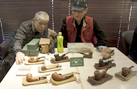 今年からハンドメイドパイプパイプ・コンペティションの出品、審査に過去の反省を含めて、変更を加えました。今年は27本のパイプが出品されました。審査は今回からフリーハンド部門で、従来の順位制からデザイン性を競う造形賞と技術力を評価する技能賞の二つに分けましたが、今年の出品パイプもデザイン性に優れ、また、完成度の高いパイプが多く見られました。クラシックシェイプ部門では,昨年から関東パイプオフ会が発起人となった「桑原進一賞」での審査となりました。