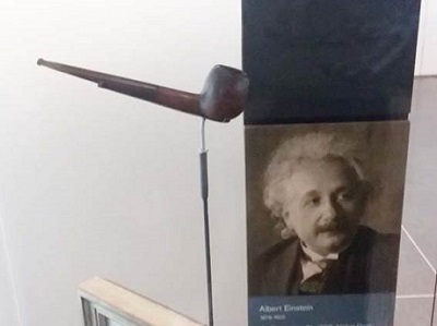 このパイプは物理学の相対性理論であまりにも有名なアルベルト・アインシュ タイン博士が愛用したパイプです。米国フィラデルフィアに西暦2010年に開 設された国立ユダヤ系米国人歴史博物館(National Museum of American Jewish History)に展示されているものだそうです。同博物館はスミソニアン博 物館系列で、米国史の中で活躍したユダヤ系の方々の歴史を紹介しています。