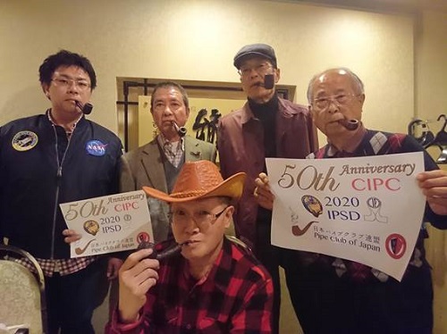 本年はCIPC=国際パイプ委員会が 創立50周年を迎えます。記念のボードを掲げパイプスモーキングデーを祝う写真が送られてきましたので掲載をします。