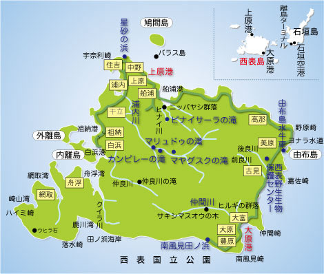 まずは南西諸島の西表島。シーズンオフの今年2月に訪ねましたが、本土の初夏並みの暖かさ。半袖半ズボンの恰好で十分でした。西表島は大半が亜熱帯のジャングルで、島の半周余りしか道路がありません。石垣島までは空路で、石垣港で連絡船に乗り換えて行きます。西表島の上原に宿を予約しましたが、石垣港から上原港に行く予定が船会社の都合で急に欠航になってしまいました。上原港行きの連絡船は冬場は天候が悪いと頻繁に欠航するそうです。何だか出端を挫かれた感じでした。