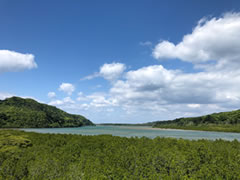 宿から徒歩で往復できる範囲の景観地をパイプと葉巻、水筒とおやつ持参でいくつか訪れました。マングローブ原生林の景観が眼下に広がる展望台と、「うなりざき公園」の二つが素晴らしかったです。ずっと道を歩いていても人影は皆無。ときおり見かけるのは草を食んでいる山羊さんだけでした。東支那海を見晴らせる展望台や広大な岬を一人占めして、葉巻とパイプ煙草を燻らせるのは至福の瞬間でした。