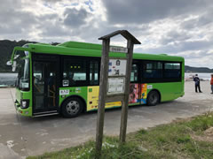 乗客は私一人。数キロおきにある停留所をノンストップで通過して白浜のバス終点に11時頃到着。運転手さんに帰りの便を聞いたら、午後は嬉しいことに2本もあるとのこと。