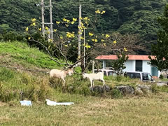 夕方のバス便が来るまで港の周辺をぶらついていると、親子らしきの山羊さん2匹が長い紐でつながれて、草を食べていました。紐が届く範囲の草を食べ尽くしていたので、近くの瑞々しい草をちぎって与えたらメエーメエーと大喜びでした。