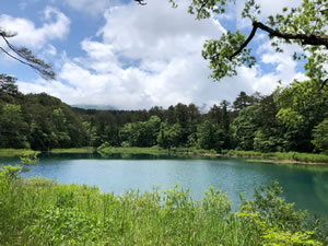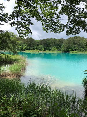 ひんやりした湿度100%の空気。裏磐梯高原は、梅雨時はオフシーズン。しかも豪雨の後とあって観光客の姿はほとんどありません。五色沼をおもむろに回りながら、休憩ベンチで一人パイプを味わっていると、タバコのうまさが身に沁みます。空模様は今にも降り出すかという曇天ですが、幸い時々パラパラと小雨が落ちる程度。傘をリュックから出すほどでもありません。