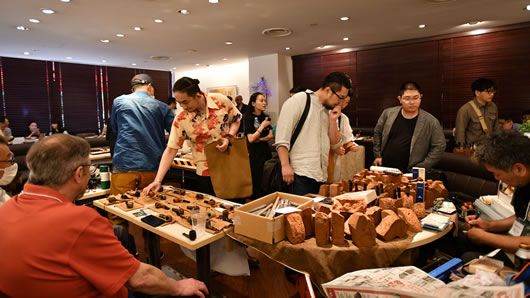 当日は柘製作所の柘会長、三井社長によるパイプの過去から未来を語るトークショーや、恒例のオークションによって大いに盛り上がりました。
