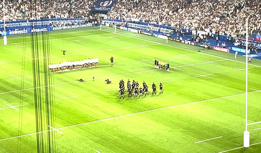 開催国・フランスと優勝常連国筆頭のニュージーランド・オールブラックスの一戦だった。「買えない」と思い込んでいたチケットが購入できた喜びは言い表せない。