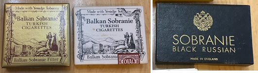 すると芹澤氏はおもむろにBalkan Sobranieのシガレット2箱を披露した。白色パッケージのoval巻きと金色パッケージだ。いずれも日本では輸入販売していなかった超高級シガレットだ。加えてシガレットのSOBRANIE BLACK RUSSINも!