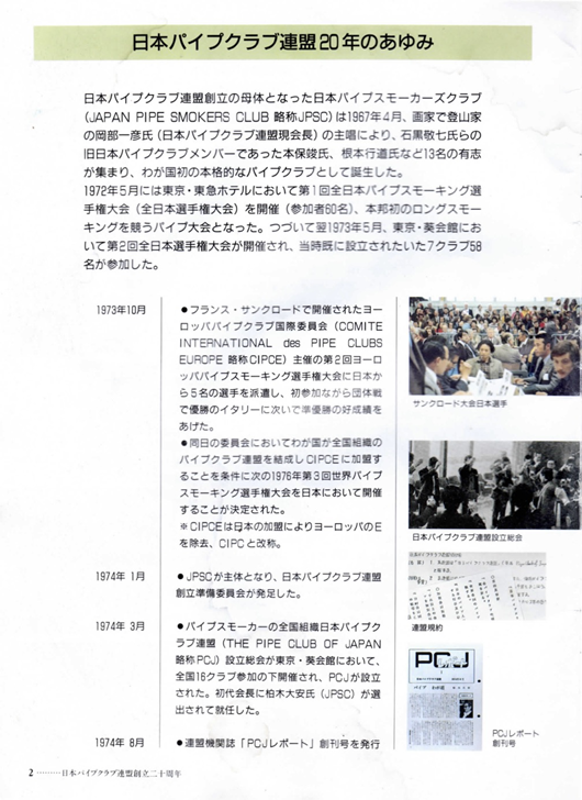 参考資料:日本パイプクラブ連盟創立20周年記念誌より一部抜粋